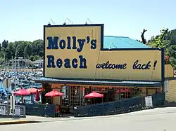 Although Gibsons is on the British Columbia mainland, the Sunshine Coast is not accessible by road. Vehicle access is by BC Ferries from Horseshoe Bay in West Vancouver, a 40-minute crossing or a ferry from Vancouver Island. Gibsons is best known in Canada as the setting of the popular and long running CBC Television series The Beachcombers, which aired from 1972 to 1990. The storefront "Molly's Reach", now a cafe, the restored tug Persephone, and a display about the series at the Sunshine Coast Museum and Archives are popular Gibsons attractions. Gibsons is a popular retirement destination, and has also attracted many artists and musicians.