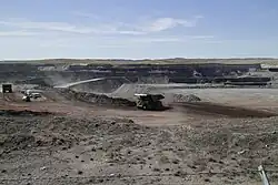 - 🌍 Eagle Butte Coal Mine Overlook (north of the Gillette-Campbell County Airport on Highway 14-16). Daylight hours. See a working coal mine with haul trucks and other heavy equipment in action. The outdoor visitor area has chunks of petrified wood, a huge coal haul truck tire, a large drag line shovel, and a platform to see the mine west of the highway that splits it. Requires climbing stairs to get on the platform. Free.