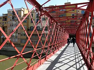 - 🌍 Pont de les Peixateries Velles spans the Onyar River, a metal lattice pedestrian bridge designed by Gustave Eiffel. It gives a good view of the houses huddled along it. In summer the river dries to a smelly trickle.