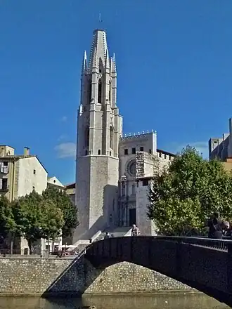 - 🌍 Catedral de Girona (Cathedral of Saint Mary of Girona), Plaça de la Catedral, ☏ +34 972 427189. Nov-Mar: M-Sa 10:00-16:30, Su 12:00-16:30; Apr May Sep Oct: to 18:00; Jun-Aug to 19:00. The main entrance from C de la Força is up a long broad flight of stairs: approach from the side streets if you wish to avoid these. Construction began in the 11th century in Romanesque style, but most of the interior is Gothic from the 13th century, including the yawning 23-m-wide nave. The west facade and approach stairs are 17th-century Baroque. In the Treasury & Museum is the Tapestry of Creation from around 1100. Your ticket includes this and nearby Sant Feliu, and you can also include the art museum. 2 churches: Adult €7.50, student €5, child €1.50. Including the art museum: Adult €12, student €8, child €1.50.