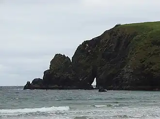 Glencolmcille is a straggle of villages on the northwest coast of County Donegal, with a population of 217 in 2016. The main settlement is also called Cashel, indicating its cluster of prehistoric and early Christian ritual sites. The lane then meanders through Malin More to end at Malin Beg. Also described on this page are other sights and amenities on the road out to this peninsula, such as Killybegs and Teelin.
