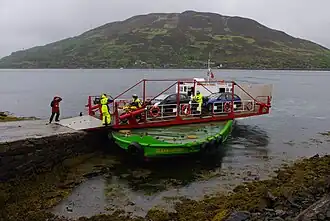 🌍 Glenelg-Kylerhea Ferry. April till mid-Oct daily 10AM-6PM, Jun-Aug until 7PM. This unusual contraption runs every 20 min in summer, pay on board. The deck is a turntable platform that can just about fit six cars. The ferry comes in alongside the pier, then the turntable is swivelled manually so vehicles can drive on and off. Car with up to 4 passengers £20, motorcycle £10, foot passenger £3.