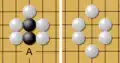 A situation called ko arises fairly often; it looks as though one player could take one of the opponent's stones, the other could reply by taking the capturing stone, the first player could retake, and so on indefinitely. However, there is a rule to prevent such infinite repetitions; when one player takes a ko, the other is not allowed to take it back on the next move. If the ko is important, the other player will try to find a ko threat, a move the opponent cannot ignore without cost. If the opponent answers the threat, then take back the ko. If the opponent ignores the threat and resolves the ko, then make good on the threat to get compensation elsewhere for the loss of the ko.