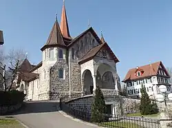 - 🌍 Herz Jesu Catholic Church, Kehlmattliweg. A prominent church on the west side of the town.
