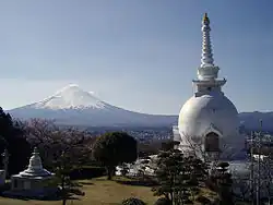 - Gotemba Heiwa Koen (Peace Park) (御殿場平和公園) The Peace Park has a white stupa with golden Buddha statues as well as temple dogs donated from other Buddhist countries in Asia. Prayers can still be heard at the temple on the grounds. Also enjoy the walkway of Bodhisattva statues hidden in the woods. During the spring, the area is covered in cherry blossoms.