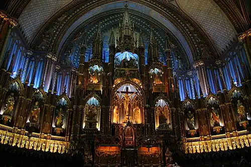 Interior of Basilique Notre-Dame-de-Montréal, showing the altarpiece