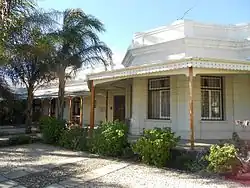 - 🌍 De Erf Manor House (3 km outside Graaff-Reinet), ☏ +27 49 893-0313. Check-in: 14:00. A 4-star B&B/guesthouse situated on a small farm, offers luxury en suite double bedrooms with private entrances. The most memorable activity at De Erf (est 1806) is consuming fine food (including a wonderful breakfast), which is served in the Blacksmith's Shop. R485 per guest sharing. R650 per single guest (occupying a double room). R200 per child 5-11 years old. Children under 5 years old stay free.