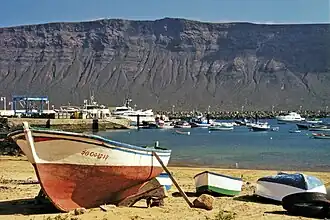 Graciosa is the smallest inhabited island of the Canary Islands archipelago. It extends 8 km (5.0 mi) north-south and 4 km (2.5 mi) east-west, with an arid landscape and a population of 734 in 2018. It's the only inhabited island of the Chinijo archipelago north of Lanzarote, and administratively is part of the municipality of Teguise there. Geologically it arose separately, and in 2018 it was proclaimed "the eighth Canary Island" rather than part of Lanzarote.