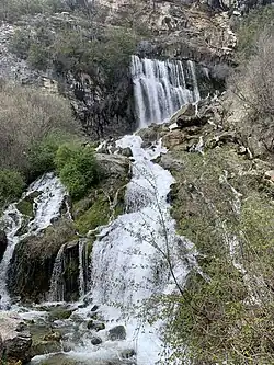 • 🌍 Sotira Waterfall (in the village of Sotira). It has a height of 100 m and springs from the interior of Mount Tomorri, flowing between its slopes, between forests and oak trees and lawns with greenery and many flowers. OSM directions target=_blank