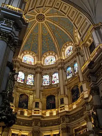 - 🌍 Cathedral of Granada (La Catedral de Granada), Gran Via de Colon 5 (enter from Gran Via just north of Plaza Isabel la Catolica; bus stop Gran Via 1), ☏ +34 958 225 488. March–August: M-Sa 10:45-13:30 and 16:00-20:00, Su and holidays 16:00-20:00; September–February: M-Sa 10:45-13:30 and 16:00-19:00, Su 16:00-19:00. Towering over the surrounding blocks is this spectacular 16th century structure, the second-largest cathedral in Spain and noted for its bright Renaissance interior. Constructed after the Reconquista of Granada to replace the mosque on the site, the cathedral was laid out with Gothic foundations but built in the Renaissance style and decorated with Baroque elements. Upon entering you'll be behind the main altar, located beneath the towering circular Capilla Mayor (sanctuary) with its magnificent domed ceiling. Surrounding the sanctuary and the pews are a series of chapels with magnificent artwork, and the sacristy (tucked away on your right immediately after entering) holds a collection of fine paintings, mirrors, and furnishings. Additionally, the spectacular façade of the cathedral (on the west side of the structure, opposite the Gran Via) is worth walking around outside to view - based on the design of a triumphal arch, it overshadows the small square below. €5.