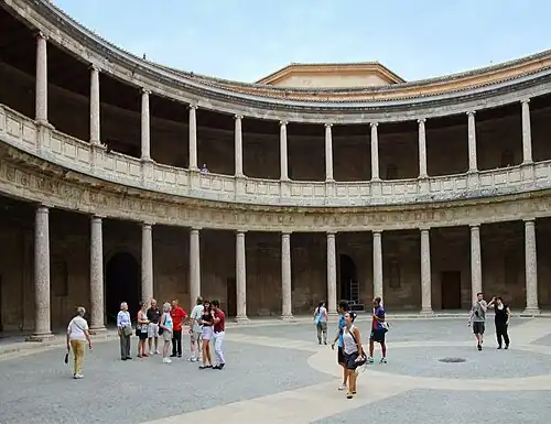 - 🌍 Palace of Charles V (Palacio de Carlos V). A more recent addition to the Alhambra, this 16th century building was commissioned following the Reconquista by Charles V as a royal residence close to the Alhambra palace. The square two-level structure is done in Renaissance style with an impressive circular courtyard ringed by a colonnade within. The building is also home to two museums, the Museo de la Alhambra on the lower floor with a collection of artifacts and art from the Alhambra, and the Museo de Bellas Artes, a small fine art museum on the upper floor, as well as a couple of changing museum exhibits which regularly feature art with some connection to the Alhambra.