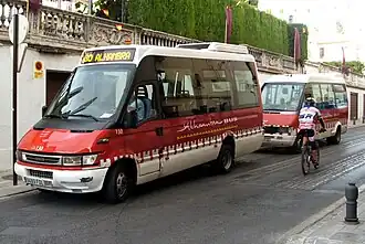 The local buses cover nearly all sights of interest and run quite frequently. Most city buses travel through the heart of town along Gran Vía (stopping in front of the cathedral). The small red and white minibuses with "Alhambra Bus" printed on the side are the best way to explore Granada, the Albaicín and to get to the Alhambra: route C30 connects the city center to the Alhambra, with the C31 traveling up to Albayzin and the C34 to the Sacromonte. The buses cost €1.60 per trip (Nov 2024), but you can also buy a multi-trip card for €5, €10, or €20 (€0.83-€0.87 per trip). Timetables for the individual routes are not available, but major bus stops along the main boulevards will have screens telling you when the next bus arrives. If you're at a smaller stop, you can find out when the next bus is coming by sending a text using the SMS system — directions are printed with images on each bus stop sign, which are easy to follow even if you don't know much Spanish.