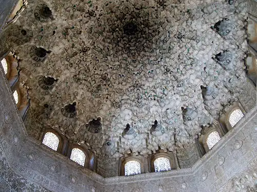 - 🌍 Palacios Nazaries. The Nasrid royal palace and the primary (and thus most crowded) attraction of the Alhambra complex, the palace is an impressive, at times breathtakingly beautiful work of architecture. Visitors get to see spectacular archways and windows, carved wooden ceilings, intricate molded-plaster work and colourful ceramic tiles at nearly every turn as they meander between lovely rooms and lush courtyards. Everyone starts their tour in the Mexuar, a set of administrative rooms with a beautiful prayer room and a small square courtyard with the golden Façade of Comares, before emerging in the Court of the Myrtles, a rectangular courtyard with a long pool of water flanked on each side by a myrtle hedge (hence the name). At the end of the courtyard you can enter a room to view the twelve Lion Statues from the fountain in the Court of the Lions, which is undergoing renovation. Cross to the other end of the Court of the Myrtles to enter the Ship Room, with its spectacular carved wooden ceiling in the shape of an upside-down hull, and the Chamber of the Ambassadors, the palace's largest and perhaps most spectacular room, which once functioned as the throne room and features a star-studded wooden ceiling, intricately carved stucco walls and beautiful arched windows. From here you'll pass through a series of small rooms, including the Washington Irving Room, where Washington Irving wrote Tales of the Alhambra, as well as down an open-air hallway with an excellent view of an adjacent courtyard (the Court of Linda-Raja) and the Albayzín. Passing by the old bath house you'll enter the Hall of the Two Sisters, a spectacular domed room with an intricate stucco ceiling and lovely views of the Court of Linda-Raja. From here you can navigate around the edge of the Court of the Lions (under renovation) to the Hall of the Abencerrages, structurally similar to the Hall of the Two Sisters. At this point you can exit the palace, which will place you near the entrance to the Partal Gardens.