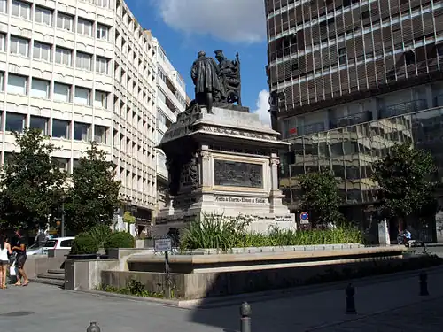 - 🌍 Plaza Isabel la Catolica, at the intersection of Gran Via de Colon and Calle Reyes Catolicos. At the junction of Granada's two grand boulevards is this small square with a prominent statue of Columbus unfurling a contract with Queen Isabel, outlining the terms of their agreement in preparation for his first voyage to the Americas, an event which likely occurred in Granada. A pleasant fountain surrounds the statue and there are benches nearby, allowing you to relax and take in the passing crowds of vehicles and people.