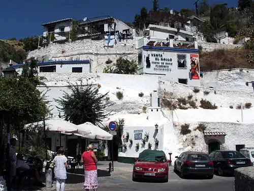 Locals often consider the Albayzín a world away from the rest of Granada, but even the Arabic quarter can't hold a candle to the relative isolation and uniqueness of Sacromonte, a gypsy (Roma) district situated east of the Albazin, demarcated by the road Cuesta Chapiz. The neighborhood is noted for its many cave dwellings built within the sides of the hill poking out here and there between the scrubby bushes and cacti. The district is also famous for its flamenco shows popular with tourists and the amazing views of the Alhambra.