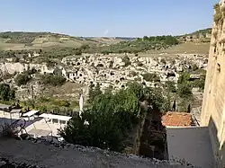 πPanorama frontale,via Civita.From this point you can see the other rock environments on the Gravina including the Grotta delle Sette Camere (Cave of the Seven Rooms).