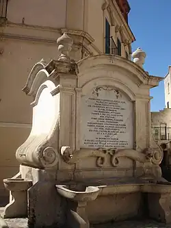 πLe Quattro Fontane,Piazza Benedetto XIII.This fountain was inaugurated in 1778 and built by the duke of Gravina, Domenico Amedeo Orsini. It was rebuilt in 1858 due to subsidence in the floor below (since Gravina is full of underground quarries).(updated Mar 2023)