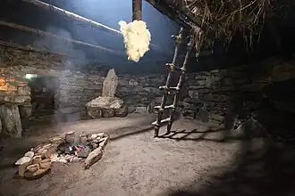 - π Bostadh Iron Age House, Bosta HS2 9LZ. May & Sep: M-F, Jun-Aug: M-Sa noon-4PM. In 1992 a storm eroded the coastline and exposed five buildings, with traces of a larger village here from approx 500 BC to 800 AD (Late Iron Age or Pictish Age). Only limited stabilisation and preservation were possible so one house was removed piece by piece and rebuilt on firmer ground, while the rest was reburied. You wriggle in by the passage into the main circular room, which surrounds a stone hearth with a peat fire. There are recesses for beds and storage. The layout and circumstances of discovery resemble Skara Brae in Orkney, but that structure is twice as old. Adult Β£4, child Β£1, cash only.