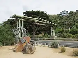 🌍 Torquay is the official start point of the Great Ocean Road, and has built up a reputation as a surfing oasis. Nearly every surfing brand you could think of has set up shop in town, including Australian favourites such as Billabong, Quiksilver and Rip Curl. Head out of town to the west; from this point on, an anchor symbol on road signs will mark the route of the Great Ocean Road. On the left, you will find the turn-off to 🌍 Bells Beach, the famous surfing beach which regularly plays host to numerous international surfing competitions. If taking the turn-off, turn left at the junction and follow the road to the beach. Following the road the same direction will eventually intersect the main highway, allowing you to turn left to continue your journey.