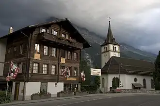 - Hotel Tschuggen, Dorfstrasse 134 (400 m east of railway station), ☏ +41 33 853 1781. Well run, value for money place on main street. B&B double Fr. 120.