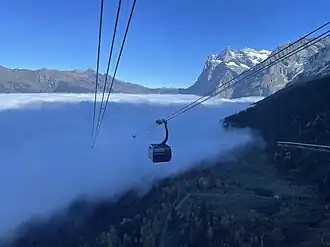🌍 Grindelwald Terminal is the station on the BOB line five min before you reach the main village. Change here for the gondola to Holenstein (1619 m) and Männlichen (2230 m, for the main skiing area on the ridge to the southwest) and for the Eiger Express gondola towards Jungfraujoch (see Kleine Scheidegg#Get around).