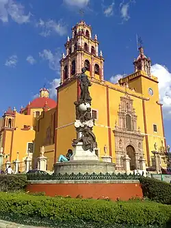 - 🌍 Basilica of Our Lady of Guanajuato (Basílica Colegiata de Nuestra Señora de Guanajuato), C/ Ponciano Aguilar 7, ☏ +52 473 732 0314. Built from 1671 to 1696. Inside this church there is a 1000-year-old statue donated by Spanish King Charles I who tried to protect it from the Arab invasion in Spain.