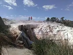Guelma was established as a city in 1836.[1] Its communal constitution dates from 17 June 1854. A modern city quickly developed around the Roman ruins, first inside the restored Byzantine city walls, later also outside the walls, which continued to function during these times, and near the railroad which crossed the city from the west to the east. The Roman theater of Guelma was restored in 1905 under the rule of mayor M. Joly. The city had a high percentage of European settlers during these times, supported by the French colonial policy. Its civilians suffered greatly during the Sétif massacre of 8 May 1945. Guelma's oldest still-operating religious building (1837) is the El-Atik Mosque, or "The Great Mosque Of Guelma". Guelma has also had a synagogue, which served the local Jews as well as a church on the place de Saint Augustin for the European settlers.