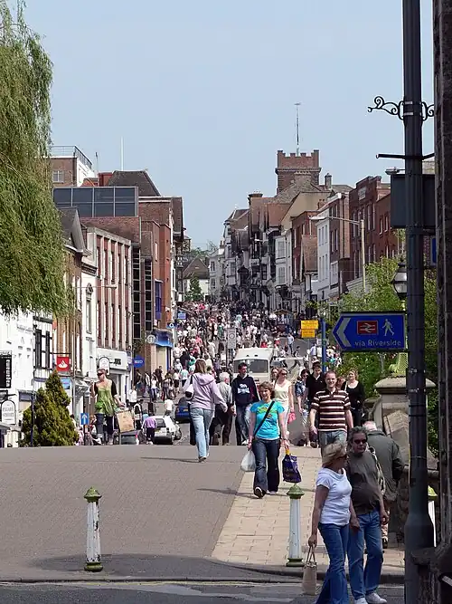 In the town centre, Bridge Street (between The Friary shopping centre and the railway station) has a cluster of formulaic wine bars and cafe bars. Cheap prices and themed nights are fun, and popular with locals, as such the area gets extremely busy around closing time.