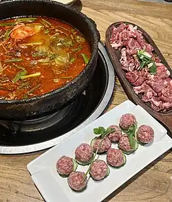 - Xinyouke Sour Soup Beef (Chaoyang Store) (心有客酸汤牛肉(朝阳店)), No. 39, Ground Floor, Building 12, Chaoyang Village, Qingxi Street(清溪街道朝阳村12栋底层39号), ☏ +86 15185181822. 09:00-00:30. Sour beef soup is one of the staples of the Miao minority's diet. The shop offers a free green leafy vegetable buffet. ¥60.