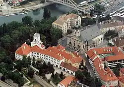 The centre of the city (Belváros) is bordered by rivers from north and west, from south is limited by a railway.