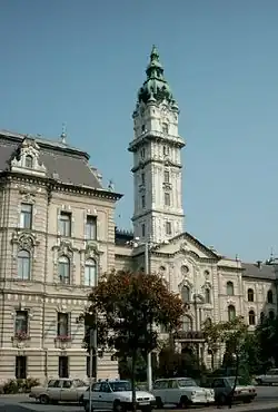 - 🌍 City Hall (Városháza), Városház tér 1 (city centre), ☏ +36 96 500100. A beautiful Neoclassical building across the street from the railway station. Its square was rebuilt in 2008 with paving stones of Italian marble. There are also two identical baroque gardens in the square. It is best to visit City Hall at night, when everything is lit up in gold lights.
