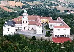 - 🌍 Benedictine Church (Loyolai Szent Ignác Bencés templom), Széchényi tér, 11 (city centre). Early Baroque, built between 1634 and 1641. The nave was decorated in the middle of the 18th century; the main altar-piece (The apotheosis of Saint Ignatius), the ceiling pictures of the sanctuary and the nave (The ascension of Saint Ignatius, Angelic salutation) were painted by Pál Troger. The beautiful baroque pulpit made in 1749, while the organ case is from 1755.