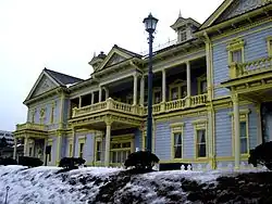 - 🌍 Motomachi (元町) (Near the foot of Mount Hakodate, all the way up to Kōryūjimae (高龍寺前)). This is the historical district. One popular attraction is the Old Public Hall of Hakodate Ward (旧函館区公会堂 Kyū-hakodateku-kōkai-dō), a European-style building which housed Hakodate's government in the early 1900s. The various churches and consulates in the area, dating to the early days of foreign trade with Japan, are also frequented by tourists. There is a pleasant walk up going from the Higashi Honganji Temple (東本願寺函館別院 higashi-honganji-hakodate-betsuin) all the way up to the Foreign Cemetery (外国人墓地 gaikokujin-bochi). On your way you will pass the Russian Orthodox Church, the Our Lady Star of the Sea Roman Catholic Church (worth a look inside; the door on the side of the main front door isn't locked, it's just heavy and visitors are welcome), the Episcopal Church as well as the old British Consulate, the Old Public Hall, the Old Russian Consulate, as well as other temples in the vicinity of the cemetery. There is also the Gokoku Shrine which houses the remains of the imperial dead following the Battle of Hakodate, as well as the remains of the Choshu rebels that died in the Satsuma Rebellion, although their memorials are not open to the public.