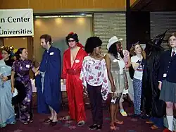 Costumes are also common for adults, even if trick-or-treating is not. Some people wear a costume to work that day, and costume parties—in homes, in bars, and on college campuses—are common in the evening or on the weekend before, known as "Halloweekend". Some charitable organizations have costume balls as fundraising events. This is the one day out of the year when you can go anywhere dressed as a clown, cowboy, or monster without anyone batting an eye. In the United States, except for very formal or professional events, you can walk around dressed as goofy as you please.