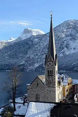 Hallstatt is a small town overlooking the Hallstätter See (Lake Hallstatt) in the Salzkammergut, in Upper Austria. Hallstatt is spectacularly picturesque, due to its location on a narrow rocky west bank of the lake with the sheer rising mountains behind it. Considered by some to be one of the most beautiful places on earth, Hallstatt is sometimes called "the pearl of Austria". It used to be a sleepy settlement nestled by a large salt mine.