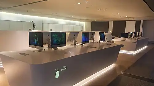 - π Al Safwa Lounge (Level 3 of South Plaza. Access using escalators or lifts across GMT Watches). An exclusive lounge for Qatar Airways First Class passengers. Humongous for otherwise only a minuscule number of passengers and features a dedicated spa, duty free shop, restaurant, cinema, showers, family rooms, and even a Formula 1 driving simulator in its game area. Free private rooms are available for 6 hour reservations, but competition for overnight reservations is fierce.