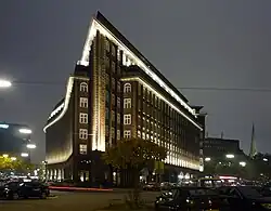 - 🌍 Chilehaus (Chile House) ( U1 Meßberg). The house, depicting the form of a ship, is probably the best example of the 1920s style of "Kontorhaus" architecture. Large office buildings are displayed in the typical, northern red brick style.