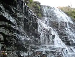 - 🌍 Felker's Falls (Felker's Falls Conservation Area), Ackland St, Stoney Creek (HSR bus 43). 22 m (72 ft) terraced waterfall.