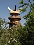 Fish ObservatoryFish-Watching Pavilion - perfect spot to compose poems while searching for the giant lake monster. Aka Guanyu Ting (Fish Observatory) about 30 min from Kanas Bus Station then another 1,111 steps to the Pavilion. The trip up Guānyú Tái, a mountain that offers a panoramic view of the lake and surrounding mountains including the Youyifeng (Friendship Peak), which is the approximate landmark of the tri-country border of Russia, China and Mongolia.