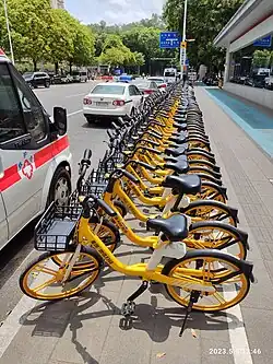 Making use of the city's extensive public bike system can be a cheap and convenient way to experience the city. There are many different brands seen throughout Hangzhou, such as HelloBike (red-white or blue-white, by Alipay), the yellow Meituan bike or green Qingju bike. These are cheaper at ¥1-2 per ride (up to 2 hours).