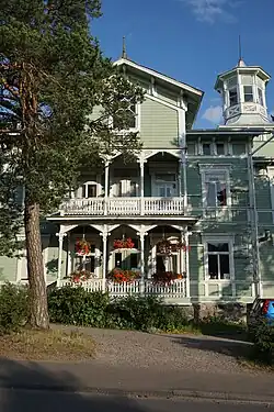 As the Hanko peninsula must be passed by all coastal traffic, it was already an important stopover during the Viking Age. It was chartered as a town in 1874; a railway had been built; Hanko was to be a winter port for Finland and Saint Petersburg since the open sea off the peninsula freezes late. The following year a spa was built, and Hanko became a resort town, with many Russian guests. Finland was then part of the Russian Empire. The casino and the richly ornamented wooden houses of Hanko date from this time. The town developed industry, too.