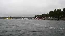 From Nagu the fairway leads to the north, by the Finnish speaking Rymättylä. First you cross Ominaisfjärden (Finnish: Ominaistenselkä), with a maze of fairways, including the shipping and cruise ferry lanes to Turku and Naantali.