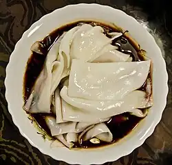 Hanzhong is famous throughout China for its "Mian Pi," cold rice noodles served with a spicy and sour sauce and usually served with vegetables such as cucumbers, carrots or sprouts.