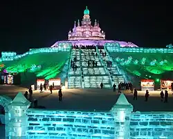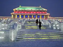 Harbin (哈尔滨 Hā'ěrbīn) is the capital of Heilongjiang Province in northeast China. The city is notable for its Russian influence and the yearly Harbin International Ice and Snow Sculpture Festival, giving it the unofficial title Ice City.