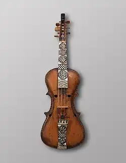 The Jaastad Hardanger fiddle with fine decorations. Built in 1651 and kept at Bergen museum.