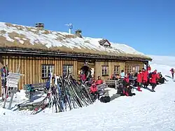 🌍 Fagerheim Fjellstugu (in the middle of Hardangervidda, next to road 7). Has road access throughout the year. 1,170 m, you can gaze across a glittering mountain lake and enjoy fantastic views in all directions – not least towards the impressive Hardangerjøkulen glacier. A restored mountain lodge with pleasant common rooms, a fireplace and bedrooms with a touch of nostalgia. No en suite rooms, and no whirlpool baths! Separate showers for men and women. 20 rooms/55 beds. You will not have to share with people you do not know. If you have a dog, it is welcome to stay in your room. Weekly rentals of brand new luxury apartments with panoramic views of Hardangerjøkulen. Mountain café during the Easter holidays and over the summer. You will be served decent, hearty, well-made food, with no frills. We made good use of what nature has to offer and our meals include trout from the surrounding waters, as well as game, mushrooms and berries from nature's larder. You may not be able to choose from a ten-course menu, but a good filling meal of traditional food. Fully licensed.