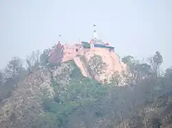 - 🌍 Mansa Devi Temple (मनसा देवी मंदिर Mansa Devī Mandir). At top of hill near the centre of town. Can be reached by cable car (₹48 for a return ticket) or by a road that gently winds uphill (about 2 km), starting from Railway Rd. The temple is aesthetically not particularly noteworthy, but the views are grand. Expect to queue to board the cable car and once more to enter the temple: despite some rudimentary attempts at crowd control, the crowds of jostling devotees can make this a pretty intense experience.