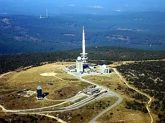 - The TV Tower. The tradition of radio and TV engineering on the Brocken dates back to the beginning of TV broadcast. It was determined in 1929 during the first wireless television broadcasting, that the short wave used was not suitable for television. Also, very high locations were required for its transmitters to transmit the very high frequencies required for TV to succeed. In 1934, the post office was given responsibility for building a mobile transmitter. In 1935 the first public picture transmission took place. In 1936, there were live transmissions of the Olympic games in Berlin. From 1936 to 1937 a 52-m-high television station and hotel with 16 floors was built. With the installation of the antenna system in 1938 the television station became operational. With the beginning of World War II, television transmissions stopped. Radio broadcasts on up to 40 transmitters carried on. In April 1945 an air raid by the Americans destroyed the hotel. The transmitter however was spared, to be used by the occupying forces. In 1947 allied troops pulled out toward the west. To justify the Americans having their part of Berlin, Saxony-Anhalt was handed to the Soviets. The Americans left in a state of chaos and the station was a gutted ruin. In 1948 the TV tower was shortened by around seven floors and a flat roof was added. From 1973 to 1976 the new landmark 152 m high metal end transmitter masts were built to enable the transmission of the East German TV channel "DDR 2". Now there is a museum and restaurant, a more modern hotel, and various cafes. The views from the summit are breathtaking and with the correct equipment and right weather conditions, some towns and reference points can be seen up to 80 km away.