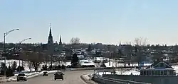 Hawkesbury is a pleasant town of 10,200 people (2021) on the Ottawa River near the Ontario-Quebec border about midway between Montreal and Ottawa. English and French are widely spoken here. More than three quarters of the population is francophone, so it's not surprising that some people think that the town is actually called "Oxbury". A bridge crosses the river to the town of Grenville, Quebec.