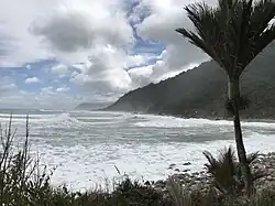 The 78.4 km (48.7 mi) Heaphy tramping track travels through the spectacular scenery of the Kahurangi National Park area. One end is on the coast 14 km (8.7 mi) from Karamea and the other end is Brown Hut, 28 km (17 mi) from Collingwood on Golden Bay. The track passes through many diverse landscapes, passing through tall verdant temperate rain forests, though limestone country, though high tussock plains, across pristine rivers, through nīkau palms and along the coastline of the Tasman Sea. The track is named after an early explorer and surveyor Charles Heaphy (1820-1881).